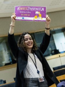 Queralt Perarnau Project Officer End FGM EU holding our campaign hashtag