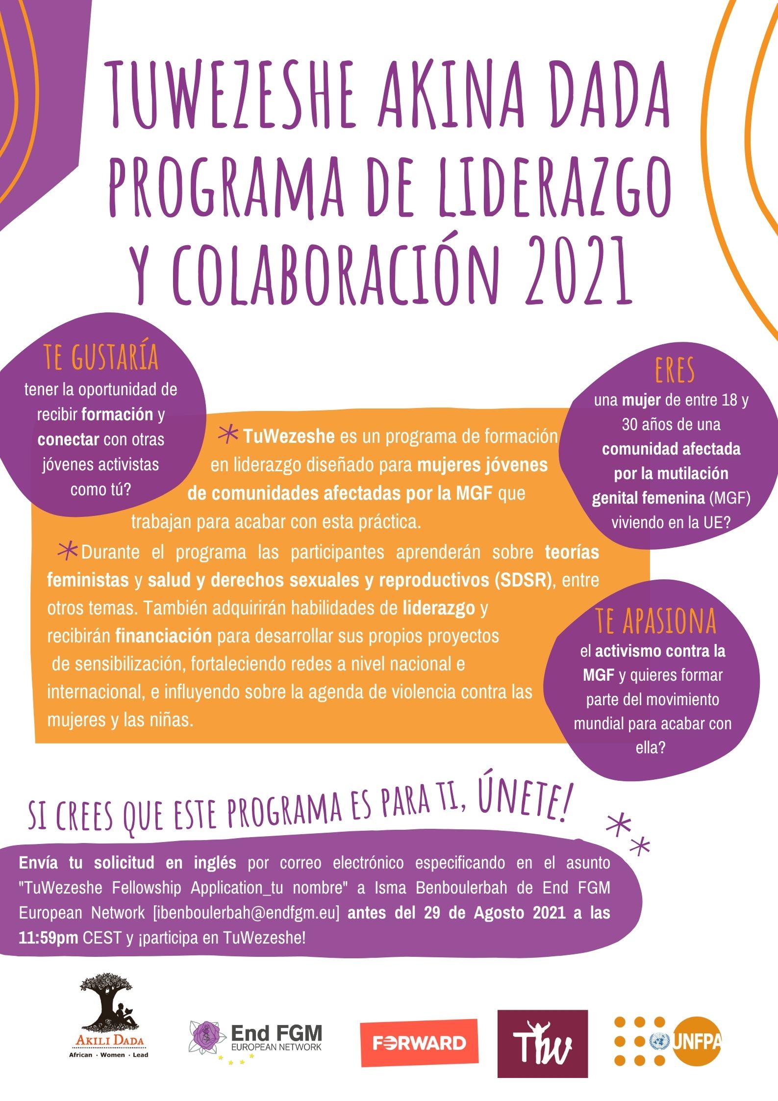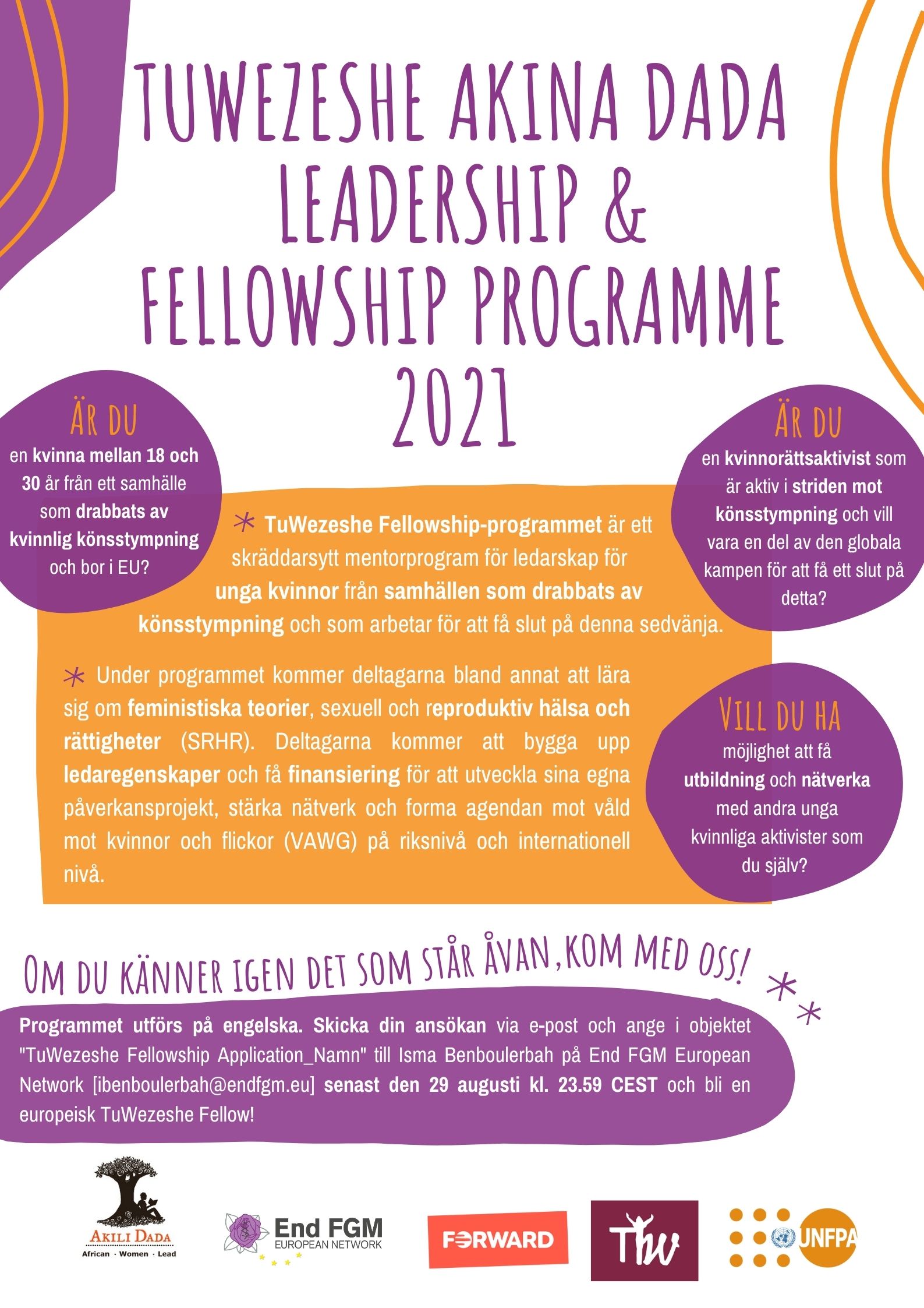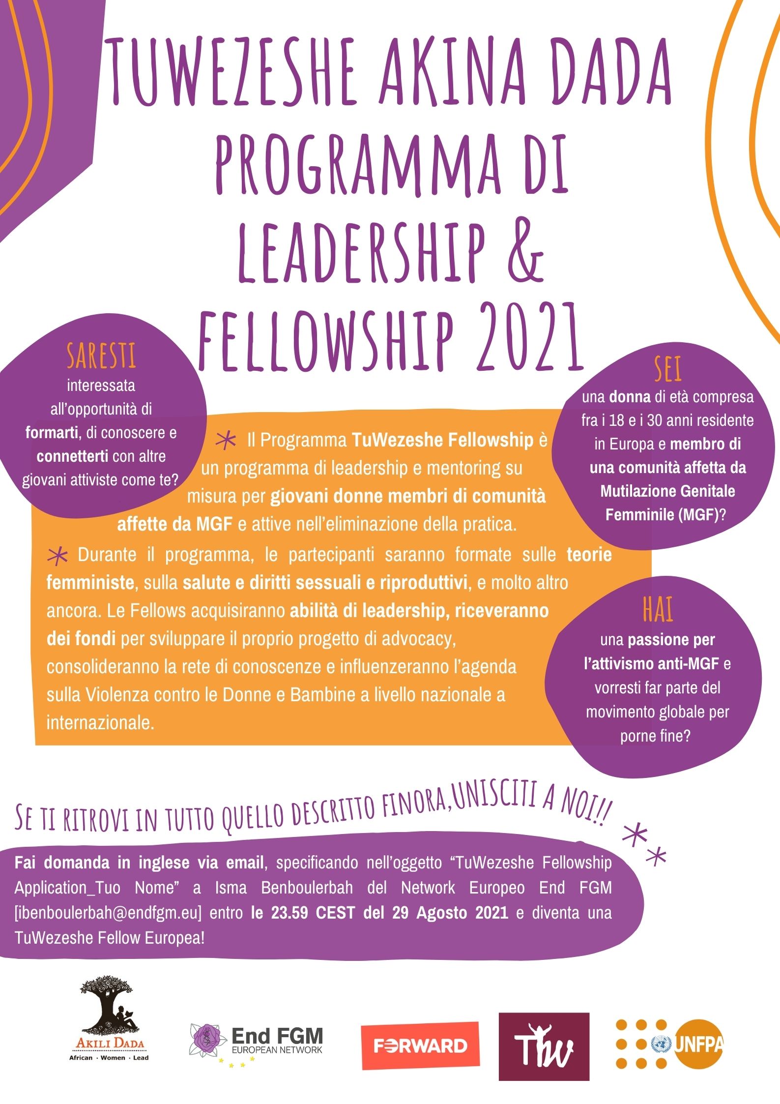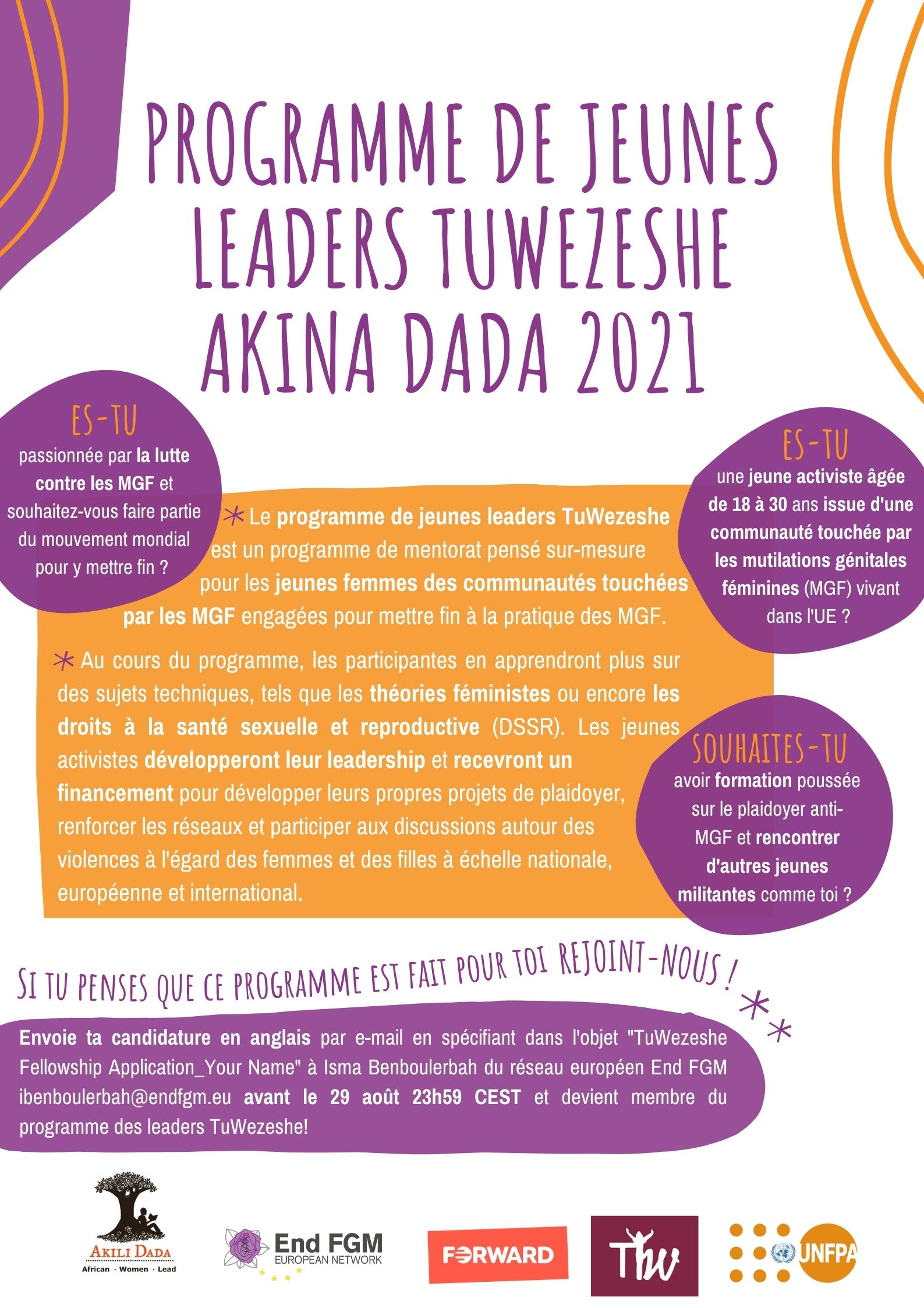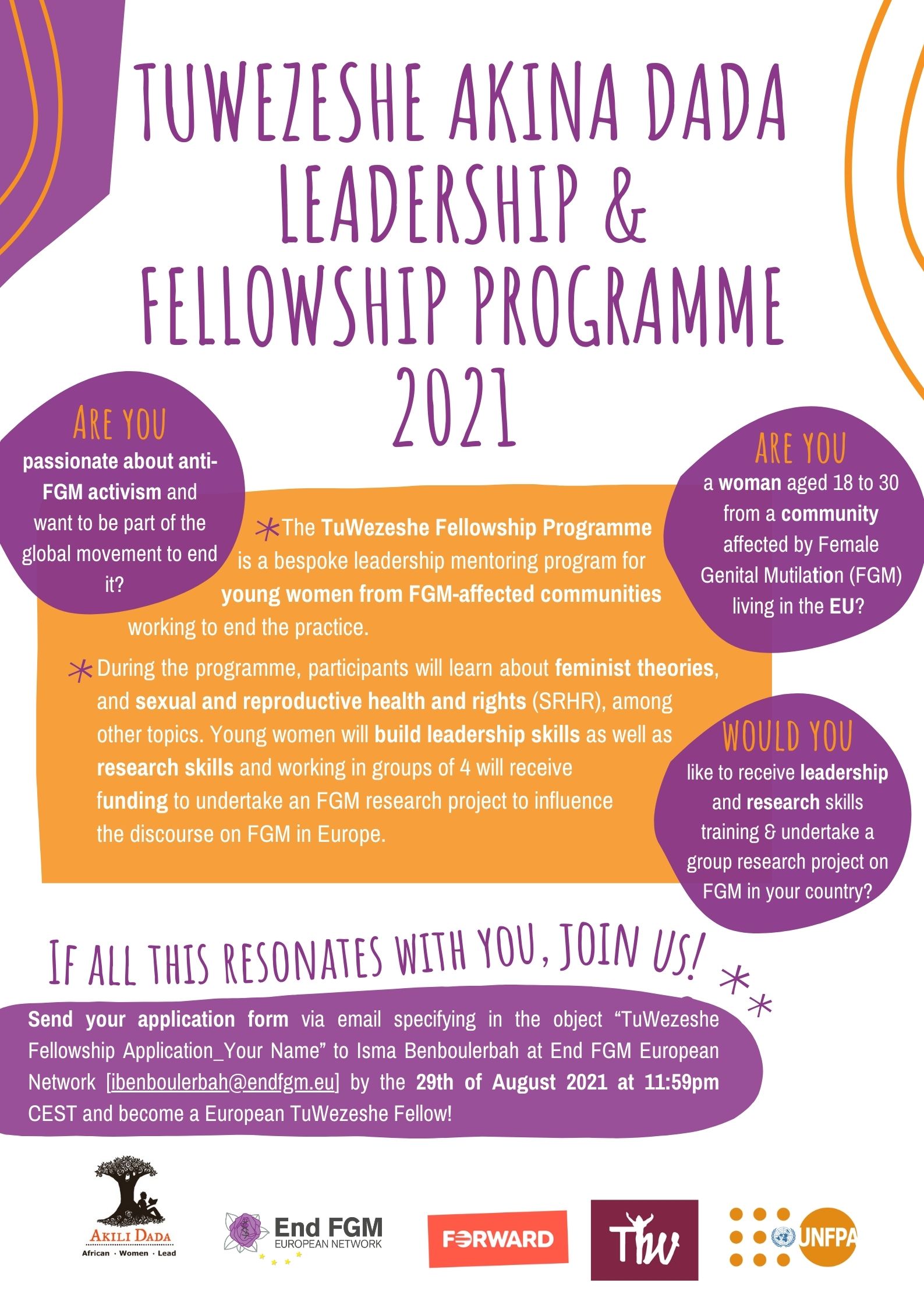 The fellowship programme will be co-facilitated in English and French. French speaking FGM-affected community members are strongly encouraged to apply.