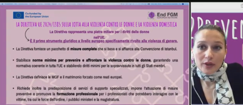 Our Policy & Advocacy Coordinator, Xheni Dani discussing the EU Directive on combating violence against women and domestic violence