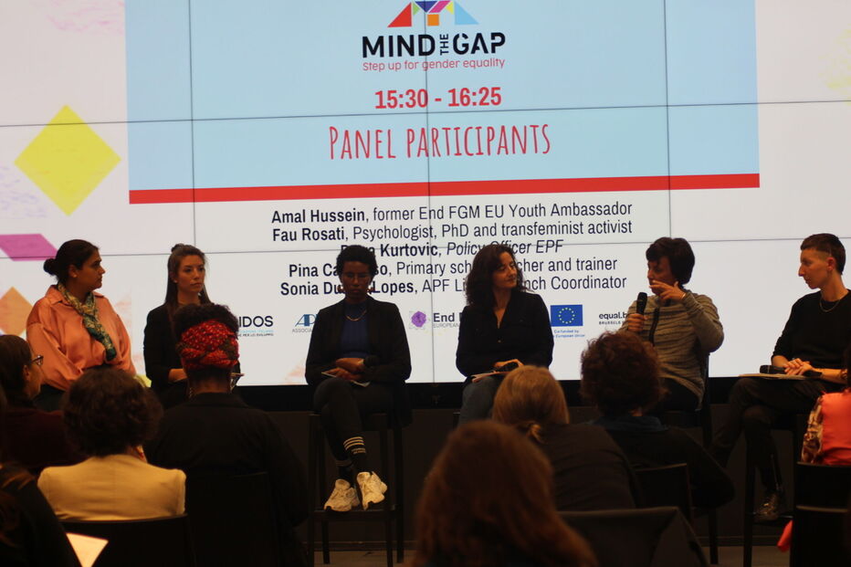 The inspiring speech was followed up by a panel discussion on "building a sustainable path toward gender equality through education", moderated by Isma Benboulerbah, coordinator of programmes at End FGM EU. The panel featured a diversity of experts: Amal Hussein, former End FGM EU Youth Ambassador; Fau Rosati, Psychologist, PhD and transfeminist activist; Petra Kurtovic, Policy Officer at EPF SRR; Pina Caporaso, Primary school teacher and trainer and Sonia Duarte Lopes, APF Lisbon Branch Coordinator.