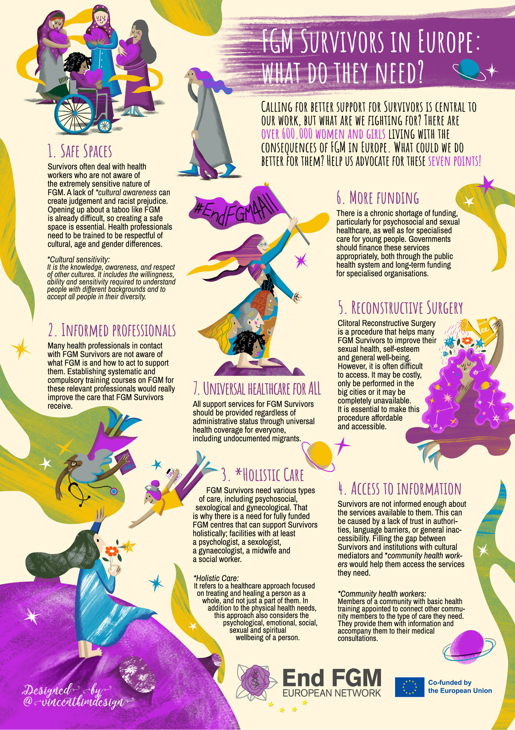 In this position paper and infographic, we focus on the provision of support services aiming to provide health care, including counselling or access to health care, for Survivors of FGM inĀ Belgium, France, Germany, Portugal and Spain.